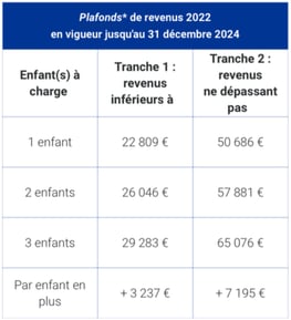 * Ces plafonds sont majorés de 40% si vous élevez seul votre ou vos enfants.
