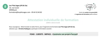 sécurité et le bien-être des enfants accueillis, ainsi que la santé de la professionnelle.
