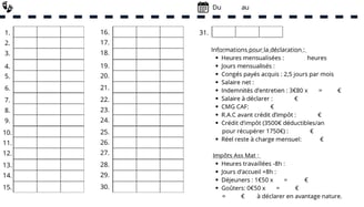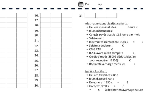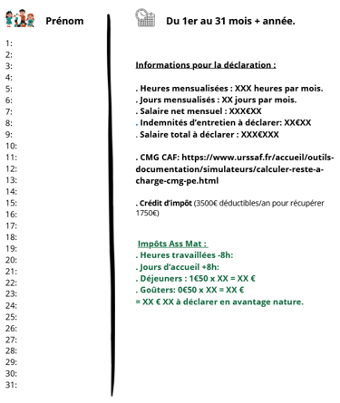 Relevé d’heures que je complète en fin de mois pour vos déclarations Pajemploi :