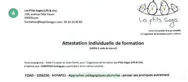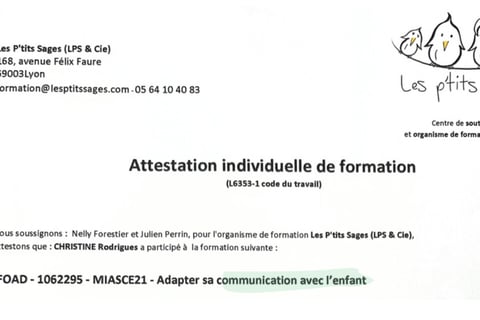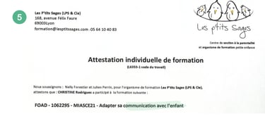 Calme et bienveillante, je m'inspire des pédagogies Montessori, Pikler-Loczy, et Reggio Emilia pour accompagner les enfants en tenant compte de leurs émotions. Mon diplôme en communication gestuelle associée à la parole permet aux enfants de "signer" leurs besoins dès 9 mois, ce qui favorise l'apprentissage du langage. J’ai également suivi des formations en neurosciences pour mieux comprendre et accompagner les réactions des tout-petits.