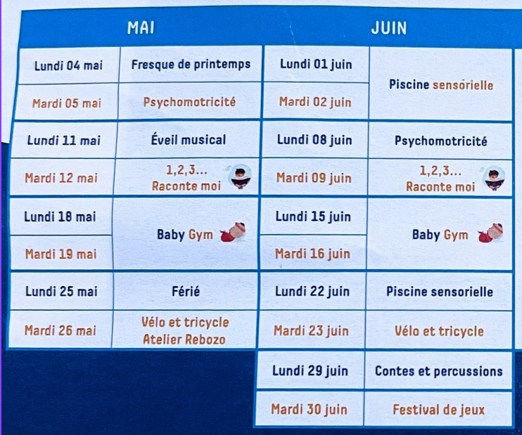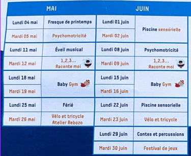 - Organise des ateliers d’éveil pour les enfants accueillis (motricité, musique, lecture…).