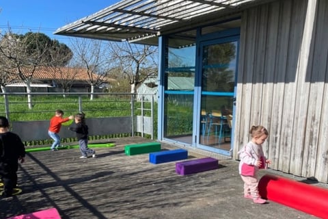 Lorsque le temps le permet, les enfants accueillis profitent d’un espace de jeux extérieur sécurisé, aménagé spécialement pour les tout-petits, équipé de matériel adapté à leur âge et conforme aux normes de sécurité.