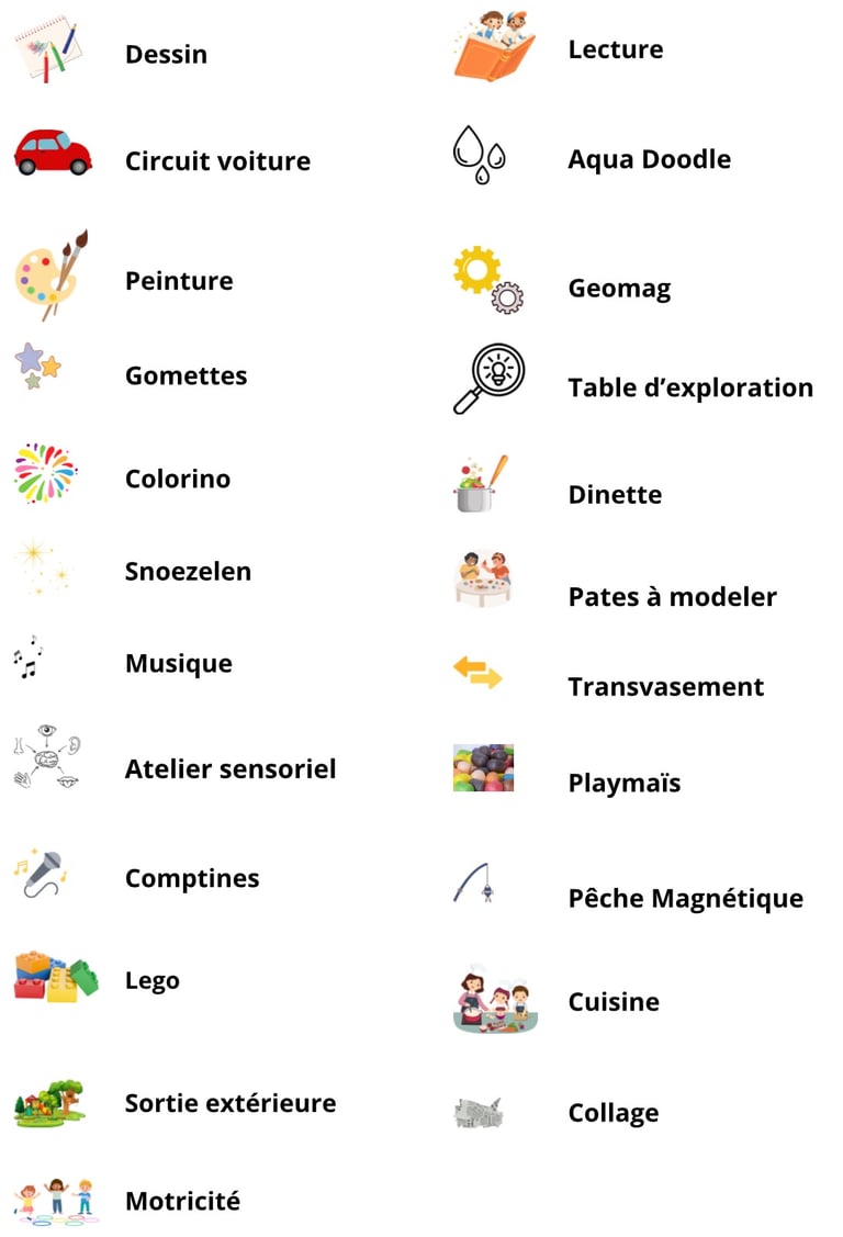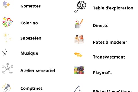 propositions d’activités peuvent être proposées, telles que des jeux sensoriels, des activités artistiques ou des jeux éducatifs.
